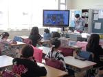 今まで学校を支えてくれた6年生を中心とした児童会役員から5年生の児童会役員にバトンタッチをする「児童会引継ぎ式」が行われました。体育館が工事中のため、放送による実施です。学級の子供たちはテレビ画面越しに旧児童会役員と新児童会役員の話を聞きました。