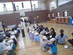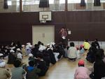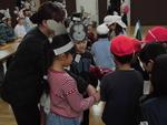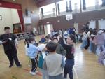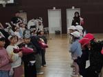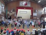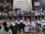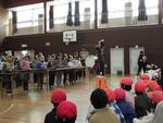 続いて1年生との交流です。1年生は、6年生を送る会での発表を披露した他、「じゃんけん列車」「猛獣狩り」のゲームを行いました。両保育所の子供たちも楽しい時間を過ごせていたのかと思います。また、1年生から両保育所の園児にプレゼントを渡しました。