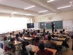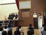 続いて始業式に入ります。校長先生の話や生徒指導担当の先生からは、いろいろなことに挑戦してほしいことや、4月は入りケガや事故など起こりやすい時期なので気を付けて生活するように話をしてもらいました。
