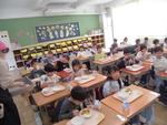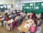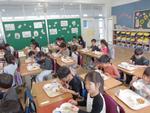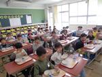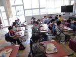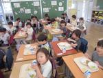 今日から1年生も給食が始まりました。本日のメニューはチキンカレーライス、チップスサラダ、パインゼリー、牛乳です。子供たちは初めて食べる学校での給食に「おいしい!」「もっと食べれる!」などととってもいい反応をしていました。自然と笑顔がこぼれていました。先生たちが「もっと食べられる人は手を挙げて」と声をかけると教室のあちこちで手が挙がりました。その子たちに配っているとあっという間に食缶は空っぽになりました。