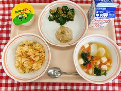 この献立は大人気で、6年生のリクエストにもあがっていました。2年生は「コロコロポテトは大好きだから最後に食べるの!」「私は好きな物は先に食べる!」などお話していました。今日初めて完食できた1年生もいました。嬉しいですね!