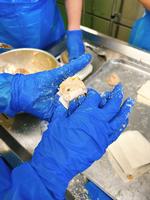 今日のいちごは、千葉県印旛郡の「とちおとめ」でした。いちごは、へたに汚れや土がついていることがあるので、へたをとってから洗います。520個のいちごのへたを一つひとつとり、優しく洗いました。今が旬のいちご!甘酸っぱくおいしかったです。