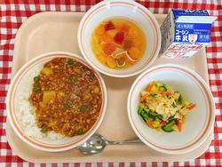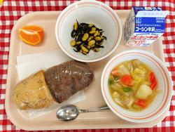 今月は6年生のリクエスト献立をとり入れています。ハムとチーズのホイルサンドパンは主食の部で3位、アルファベットスープは副菜・汁物の部で1位でした。人気メニューだったので、あっという間に食べ終わっていました。