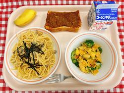 カレートースト 和風たらこスパゲッティ カリポリサラダ バナナ 牛乳