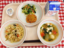 吉野煮は吉野くずで有名な奈良県の料理で、くず粉でとろみをつけた煮物です。給食では、片栗粉でとろみをつけました。鶏肉、生揚げ、里いも、人参、たけのこ、しいたけ、こんにゃくが入り、とろみがついているので体が温まりました。「煮物を食べると気持ちがホッとするね!」と職員で話していましたが、低学年は食べ慣れないようで、残りがやや多かったです。給食ならではの具だくさんの煮ものも、少しずつでも食べられるようになってほしいです。