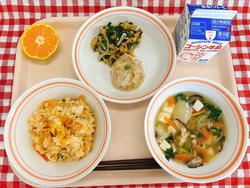 キムチごはん しゅうまい かんぴょうのごまずあえ トック入りスープ みかん 牛乳
