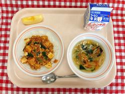 マーボー丼 春雨スープ りんご 牛乳