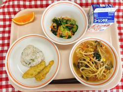 カレー粉やチリパウダー、ケチャップで味付けしたメキシカンピラフ!どのクラスも人気で、きれいに食べていました。