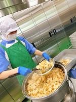 たけのこがとれる季節になりました。とれたての新たけのこを、だし汁と醤油、みりん、砂糖などで煮てからごはんと混ぜ込みました。1年生にとっては初めての和食給食でしたが、「たけのこごはんおいしい!」と言ってよく食べてくれました。