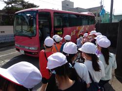 そして今日は3年生がユーカリ交通公園に行き、自転車の乗り方など交通安全の学習をしました。学校までバスが迎えにきてくれました。さあ!出発です!