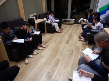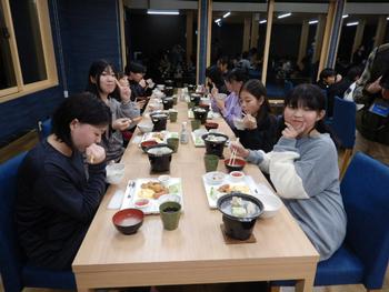 反省点と改善点を話し合いました。部屋に戻り、会議の内容を伝えます。その後しばらくは部屋でおしゃべりタイムを楽しんでいましたが、21:30の消灯になると、どの部屋も静かになりました。体調不良もなく、みんな元気に1日目が過ごせてよかったです。