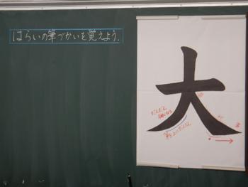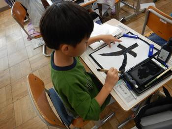 3年生の隣のクラスは習字の授業をしていました。はらいの練習です。