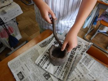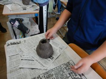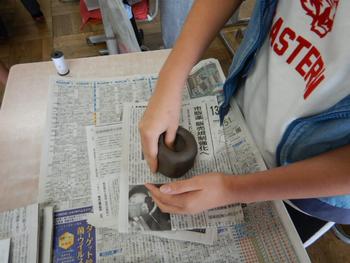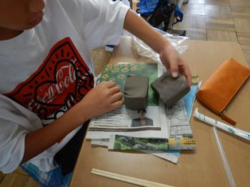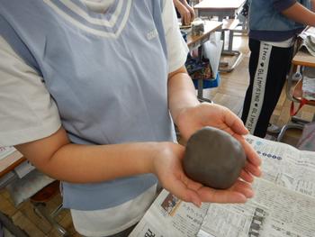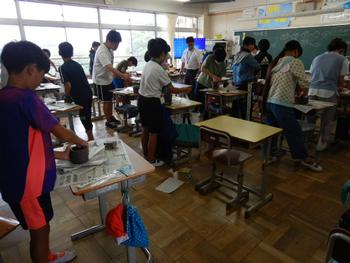 6年生が陶芸教室をおこないました。まずは、作り方の説明を聞きます。