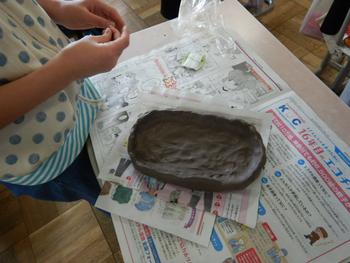棒状の粘土を巻き付けることにより、入れ物の高さを高くします。