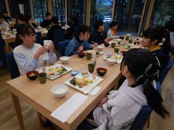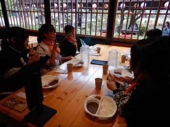 まずはみんなで昼食です。「まだ、おなかが空いてないー」と言っている人もいましたが、カレーだと意外と食べられるようです。