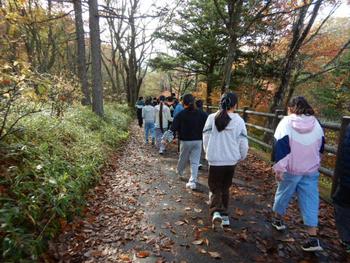 修学旅行2日目の様子です。みなさん昨夜はあまり眠れなかったようで、睡眠不足のようでした。朝、雨が降っていたので散策はしませんでした。そのかわり、ホテルの大きな窓から鹿や猿を見ることができました。子鹿や子猿の集団が遊んでいる様子を見て、「かわいいー!」という歓声があがっていました。熊には遭遇しなくてよかったです・・・