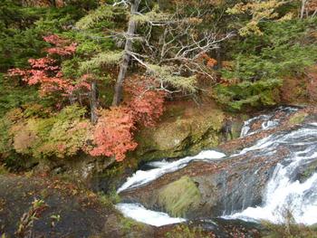 バスに乗り、竜頭の滝に行きました。地面が濡れていたので、気をつけて歩きました。