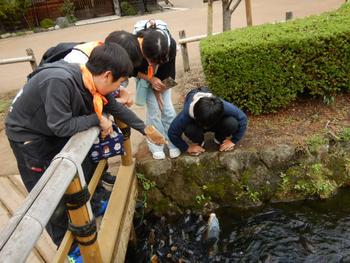 このあとはグループ行動です。見学したりおやつを食べたり、おみやげを買ったりして楽しみました。鯉にえさをあげているグループもありました。