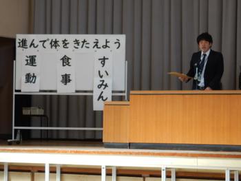 生徒指導部からは今月の生活目標「進んで体をきたえよう」について話がありました。