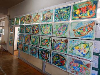 児童同士がお互いの作品を称え合うことで、自己肯定感を高めることが絵画展のねらいです。保護者の皆様もこの機会にぜひご覧いただき、頑張ったお子さんに自己肯定感を高める励ましの一言をお願いします。