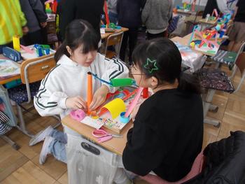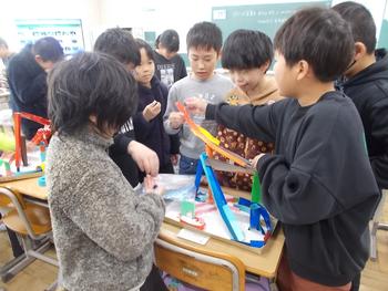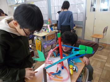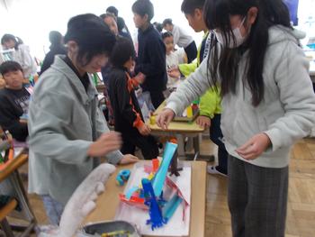 5年生が図工で作った「ビー玉大ぼうけん」の鑑賞をしていました。