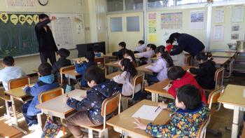 今日も幼稚園の年長組が体験るーむにきました。最近はたくさんの幼稚園や保育園が大橋小にきています。