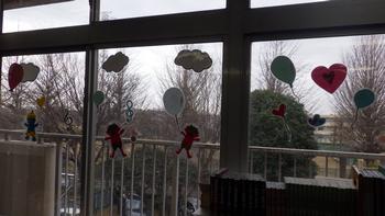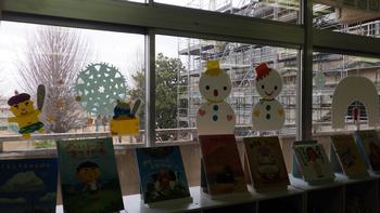 豆まきと雪で冬らしい飾りです。廊下は・・・