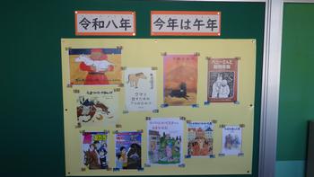 廊下には今年の干支である午年に関係のある本が紹介されています。