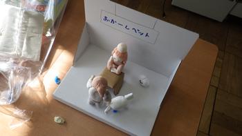紙粘土など様々な材料を使って、自分のお気に入りの場面を作っていました。