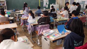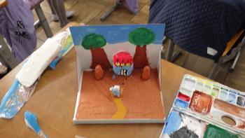 4年生が図工で、本から飛び出したような作品を作っていました。