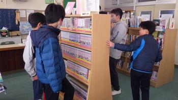 図書室に漫画の本がたくさんあり、うらやましそうでした。入学したら図書室で読んでくださいね。