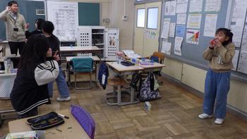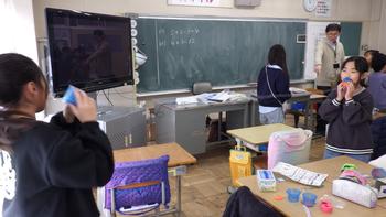 3年生が理科の「音の性質」の学習で糸電話を作っていました。