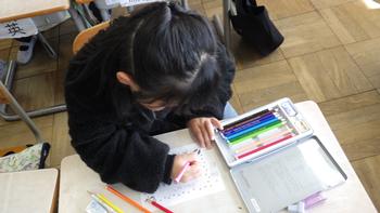 2月の生活目標は「感謝の気持ちを表そう」です。全校児童でお世話になった方々に、感謝のメッセージカードを書いています。