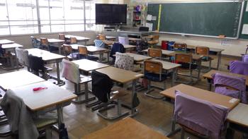 がらんとしてさみしい教室です。保護者の皆様、急な連絡でしたが、対応してくださりありがとうございます。
