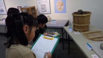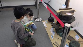 展示コーナーでは昔の道具がたくさん展示されていました。3年生は道具の絵を描いたり、わかったことをたくさんメモしていました。