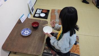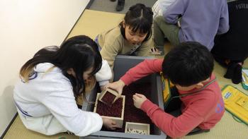 量の表し方も今とは違います。大中小のマスを使って小豆を量っています。小豆の触り心地がよかったらしく、人気のコーナーでした。