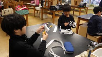 物作りクラブです。ゴム鉄砲を作り、的当てを楽しんでいました。