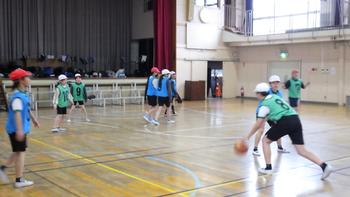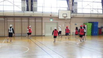 屋外スポーツクラブです。雨が降っていたので、教室で「何でもバスケット」を楽しんでいました。