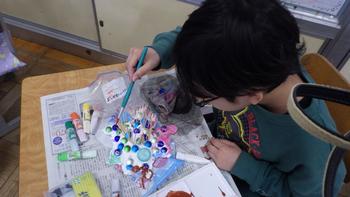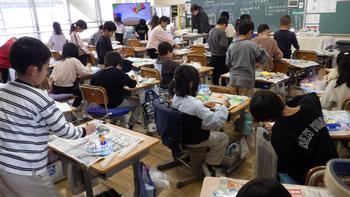 2年生が図工でメダルを作っていました。送る人のことを考えながら、工夫を凝らし、丁寧に作業していました。