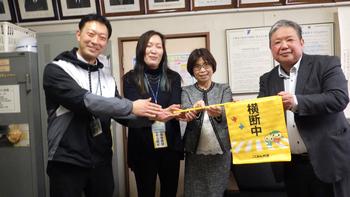 そして今日は横断旗の寄贈式がありました。登下校の安全のために、家庭に1本ずつ寄贈されます。