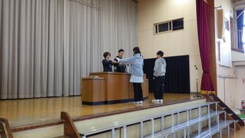 予行練習の後は6年生の体力章の表彰をおこないました。