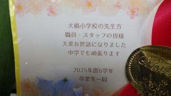 お心遣いに感謝いたします。大橋小の職員一同、卒業生の活躍と幸せを心から願っています。