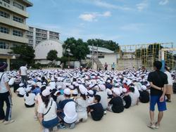 生徒指導主任の話と続いて最後にみんなで校歌を元気よく歌いました。いい夏