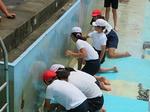 6年生がプールをきれいにする前に、梨香台小の先生たちでヘドロなどの汚れを落としました。