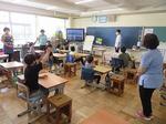 外で遊べない代わりに1年生は昼休みにストレッチマンを見ながら体を動かしていました。