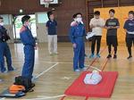 東部消防署の方々を招き、人形やAEDトレーニングユニットを使って心肺蘇生法の練習をしました。