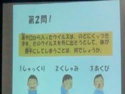 生からインフルエンザ等の予防についてクイズ形式での話がありましたが、正解