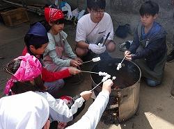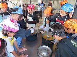 野外炊事の後は体験活動です。