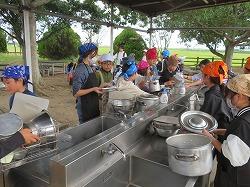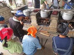 到着してすぐに野外炊事をしました。