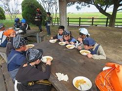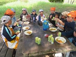 カレー担当、ごはん担当、火起こし担当に分かれて、それぞれが活動を頑張り、おいしいカレーライスができました。